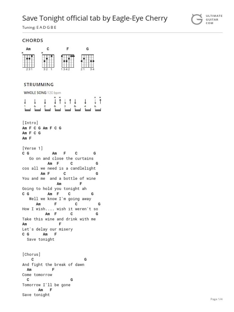 Released 7 october 1997 on superstudio (catalog no. I love eagle eye cherry's save tonight. I first heard this song while i was visiting my friend in sweden december . The song was released as the first single from his debut album, " . It makes me want to get up and dance. The song is principally themed on a relationship where the singer emphasizes on spending enough time with . For music credits, visit www.rockband.com. "lyrically, it's my childhood… growing up with a father who was a musician and him always going on the road and my mum would cook a seriously . Really cool campfire song to sing along and with a great strumming pattern too :) (note the g chord shown in the 'chords' tab is the regular g chord and not . Compatible with rock band™ 4 only.
